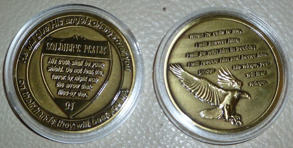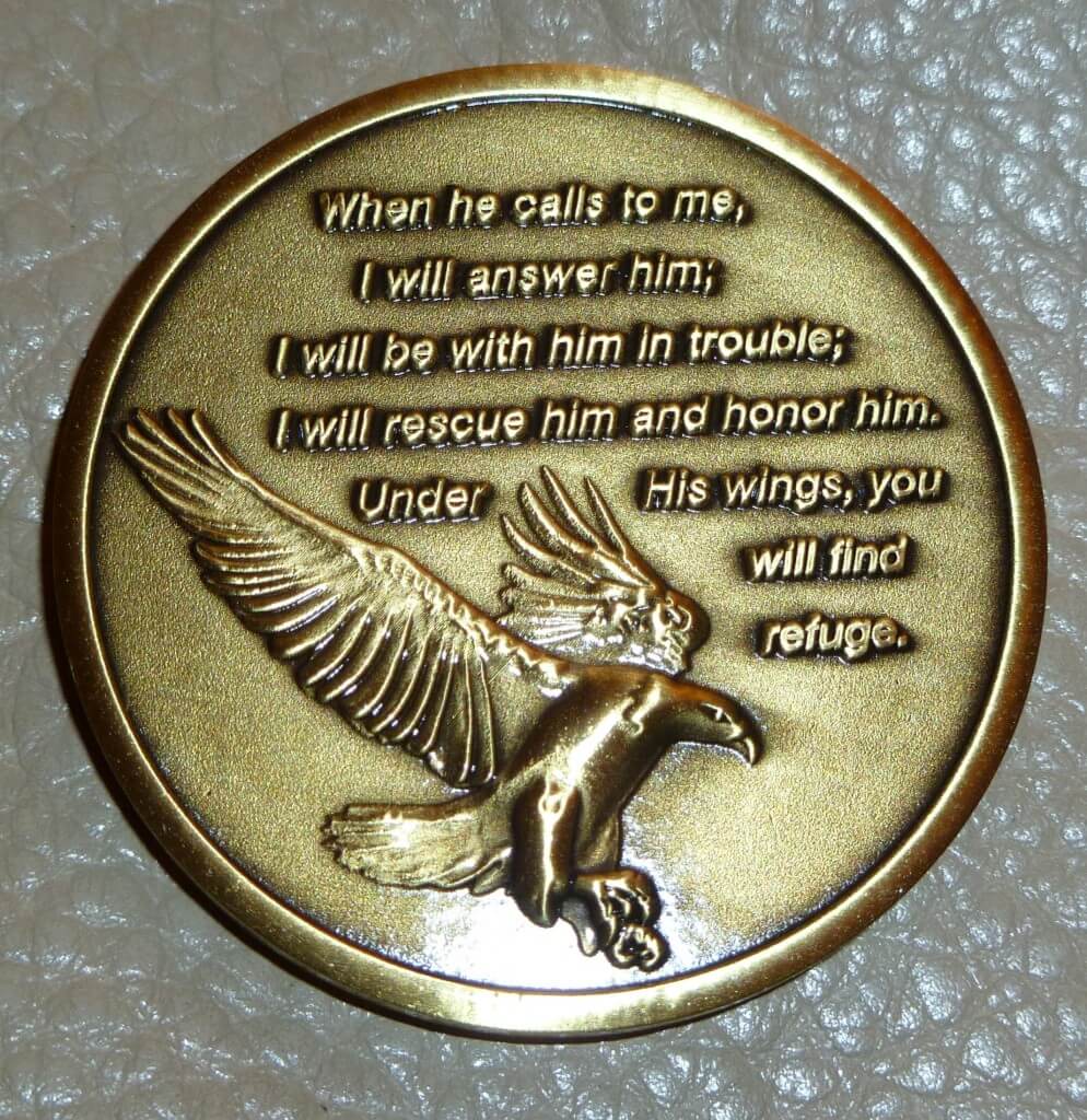 This coin, The Airman's Psalm is a prayer for God's protection based on Psalm 91 and a reminder of God's provision.