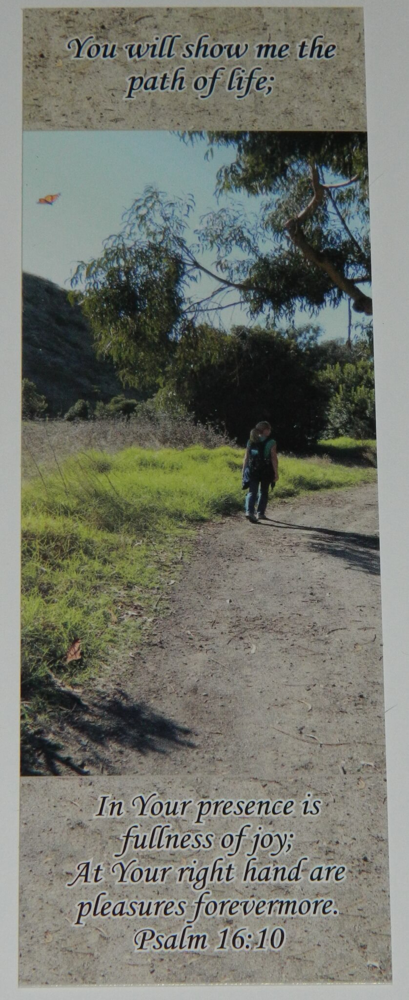 This is a 7" x 2 3/8" bookmark printed on quality cardstock with the verse,"You will show me the path…